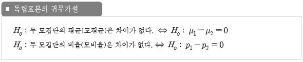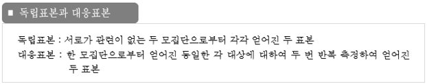 독립표본 : 서로 관련이 없는 두 모집단으로부터 얻어짐