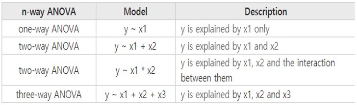 요인이 1개이면 one-way ANOVA, 요인이 2개이면 two-way ANOVA
