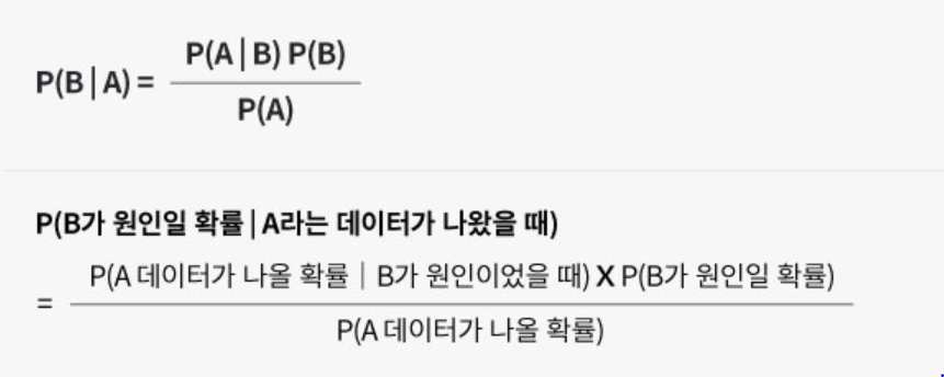 - 사후확률 : 결과가 발생했다는 조건에서 어떤 원인이 발생했을 확률