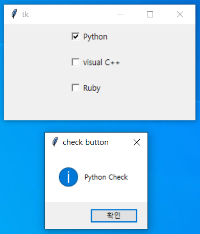 messagebox.showinfo("check button", "visual C++ Check")