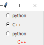 cb1 = Checkbutton(window, text="Python", variable=chk1, anchor=W, height=2, width=10, command=checkFunc)